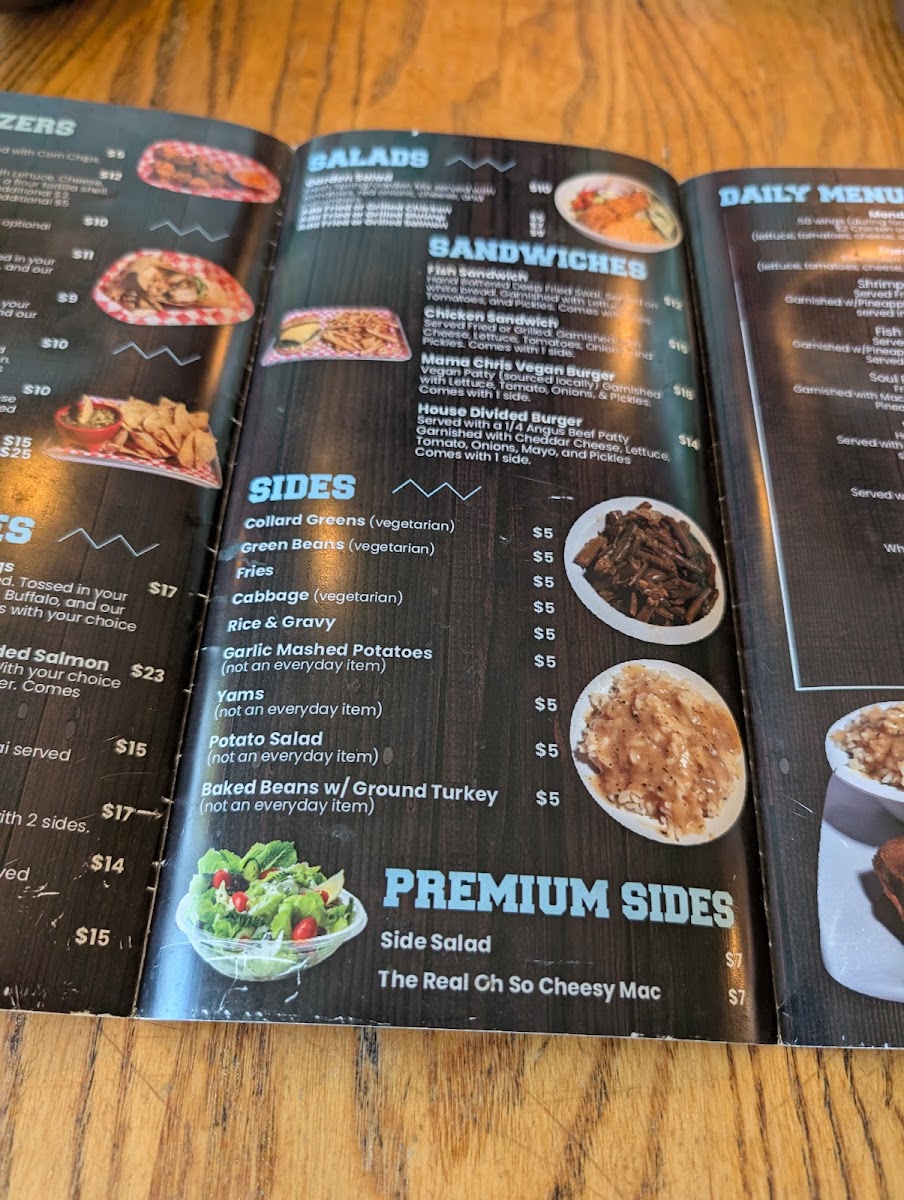 The menu shines with an array of hearty sandwiches and burgers, highlighted by the juicy Angus Beef Burger and flavorful Mama Chris Vegan Burger, catering to various palates. Guests rave about the soul food influences, particularly the crispy chicken wings and collard greens that have impressed many, hinting at a culinary legacy.